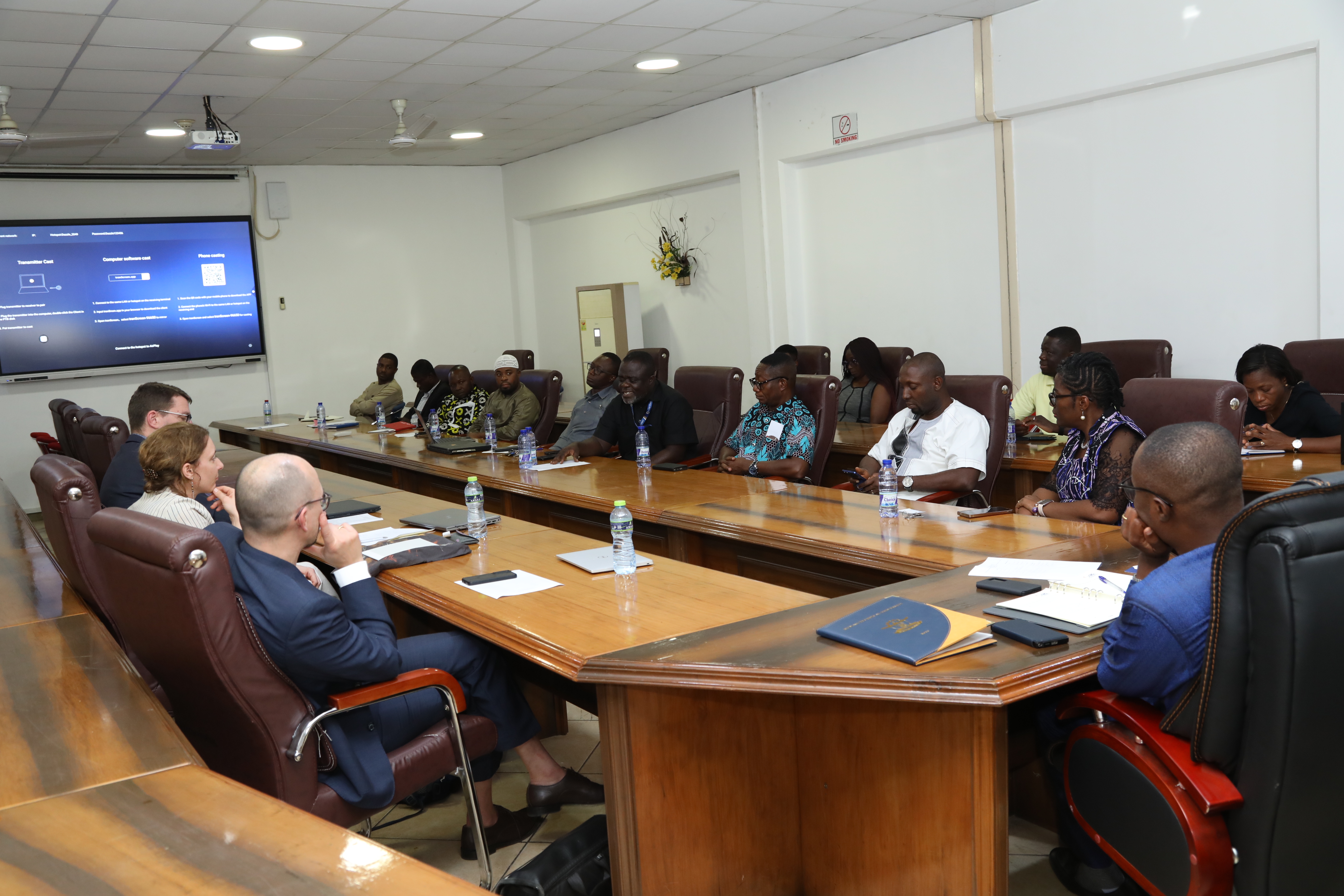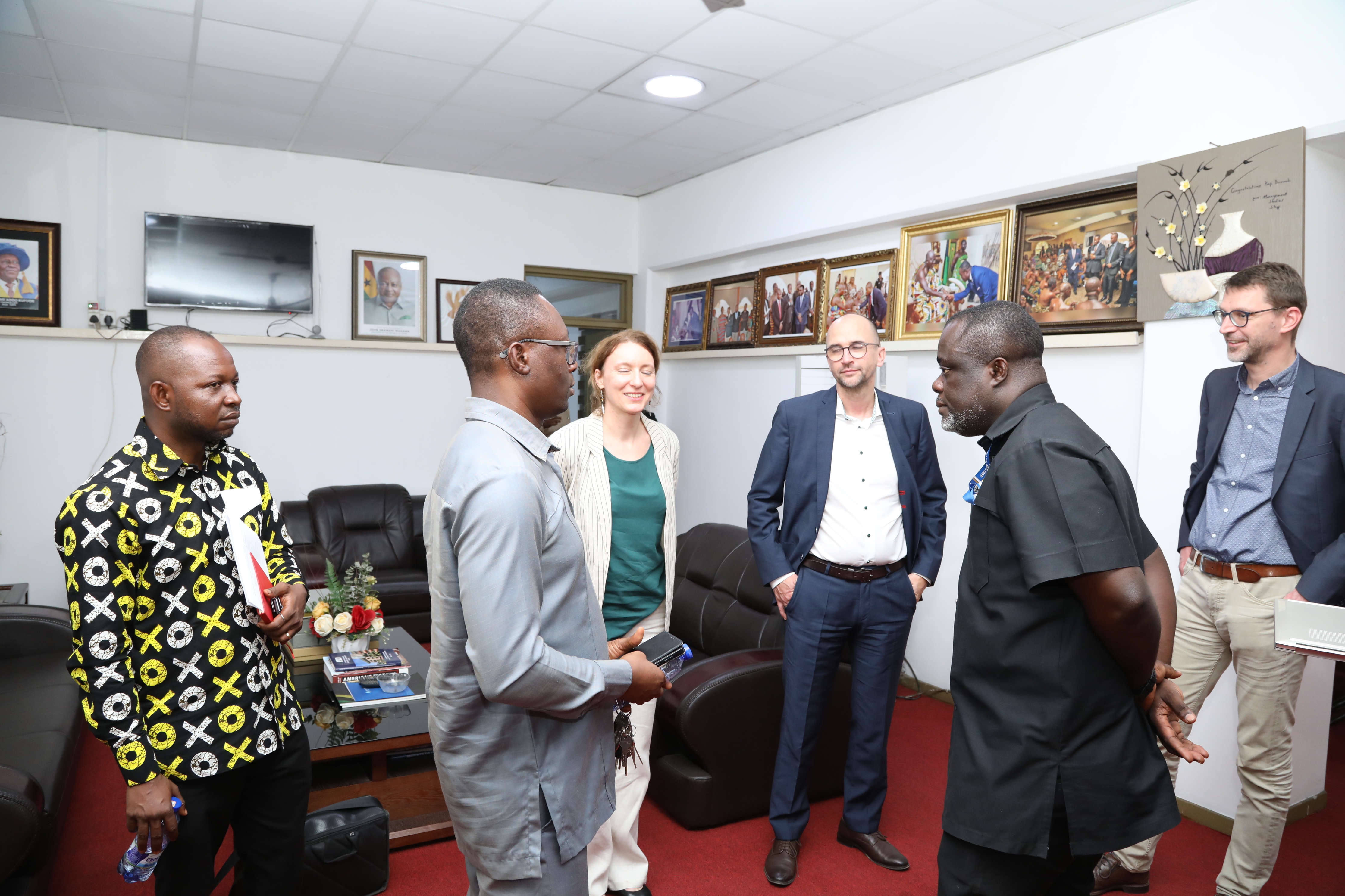 The team was received at the Council Chamber by the Vice-Chancellor, Prof. Gabriel Dwomoh, together with members of the University’s Management and the Deans of Faculties. The presence of the Deans enriched the discussions, providing faculty-level insights into academic programmes, research priorities, and practical areas for further collaboration.
